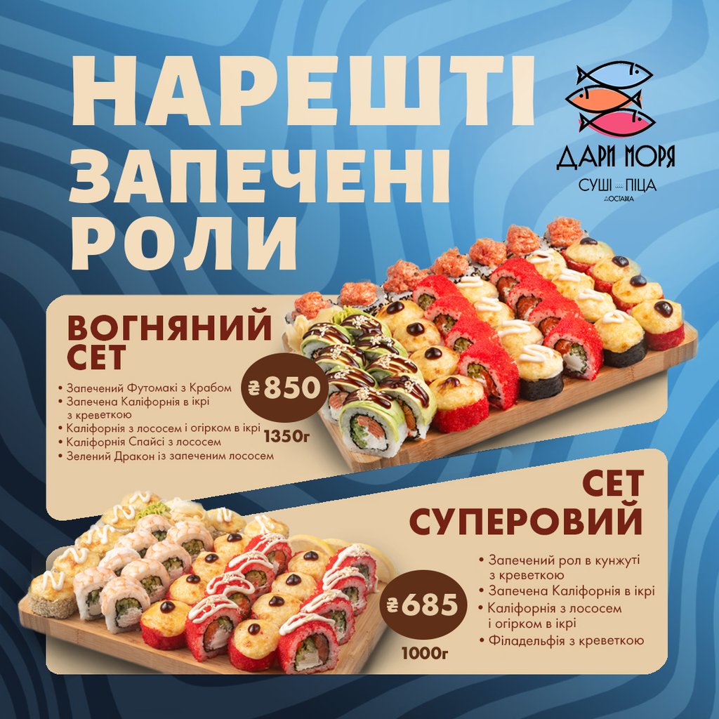 Гармонія смаку для справжніх гурманів:▪ Філадельфія з креветкою та лососем▪ Філадельфія з лососем▪ Філадельфія з тунцем▪ Каліфорнія з вугром▪ Каліфорнія з лососем в ікрі