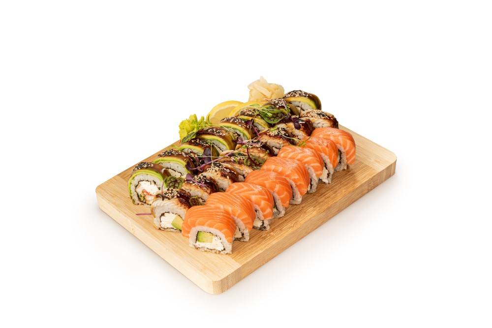 - Філадельфія з Тигровою креветкою;- Сирний рол з лососем;- Золотий Дракон;- Зелений Дракон.